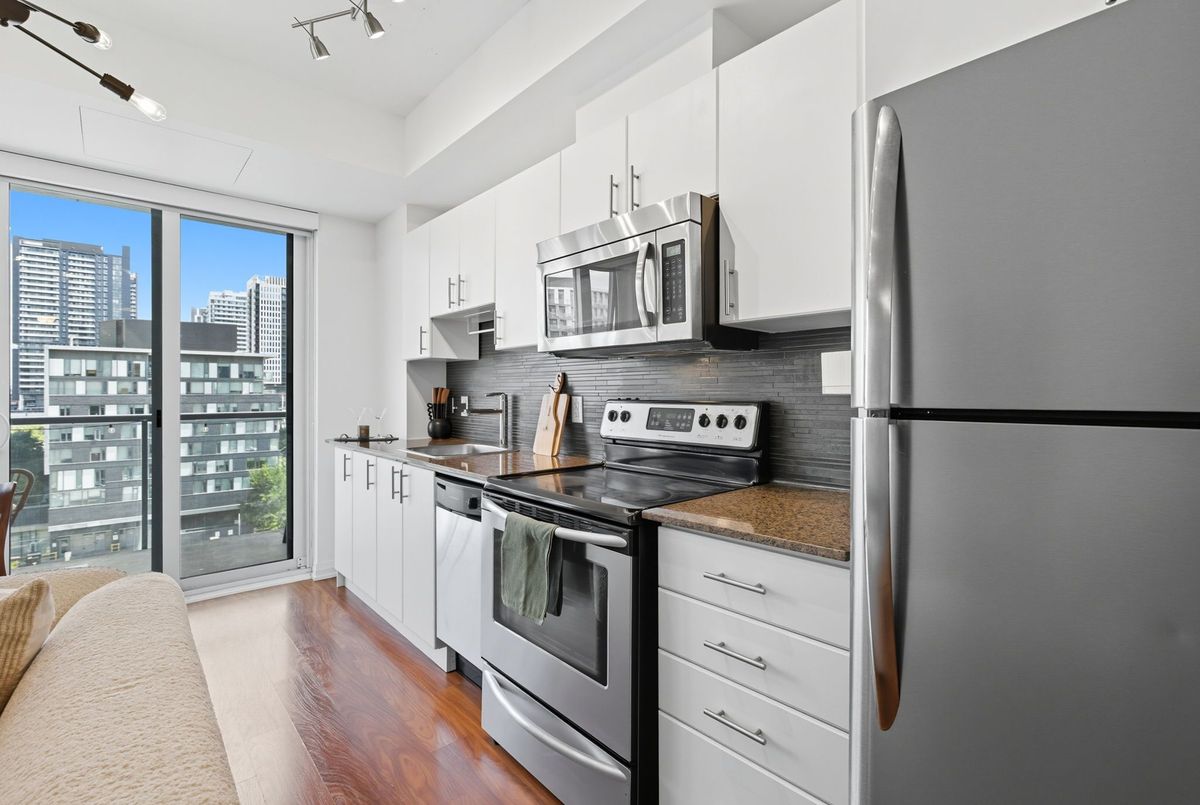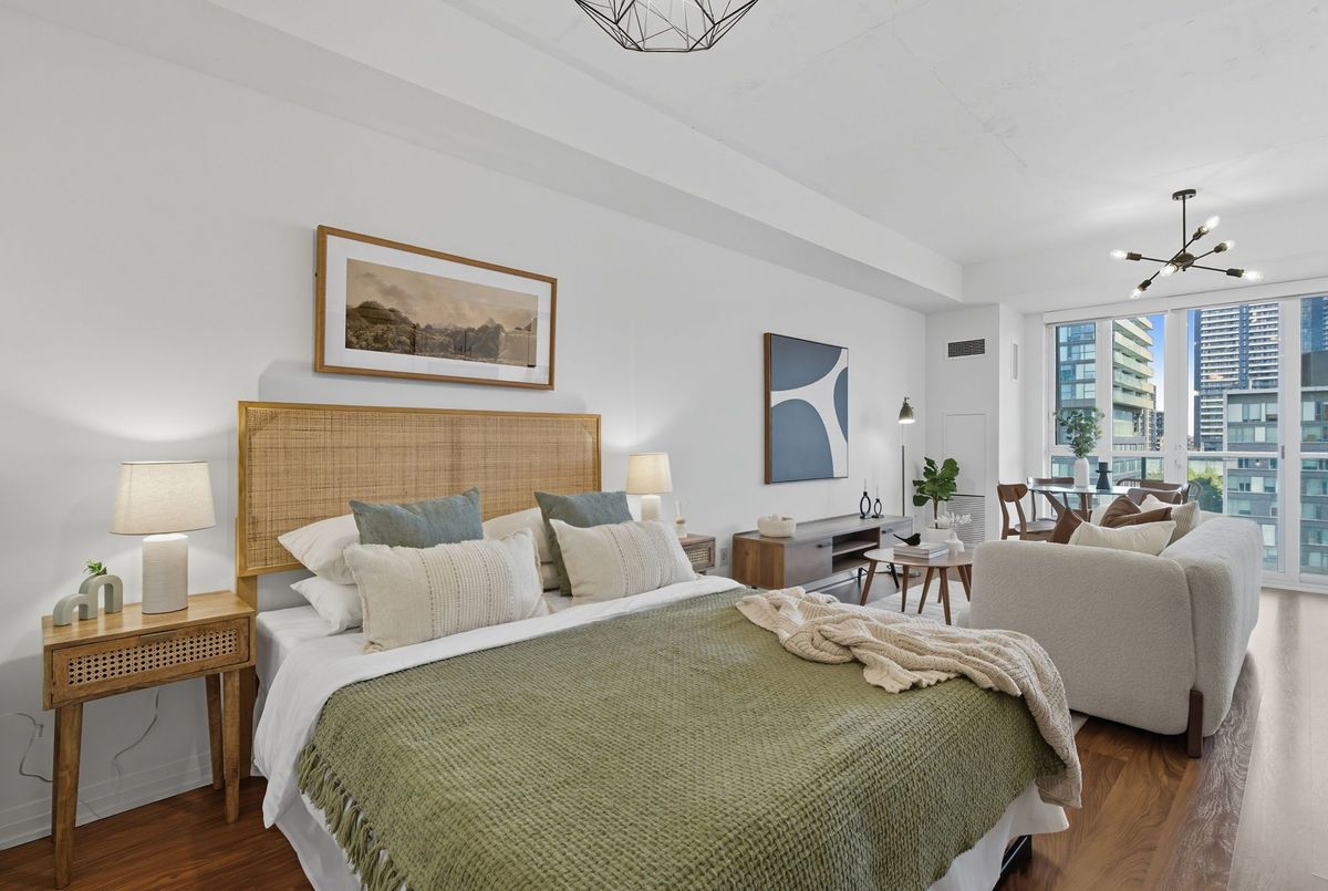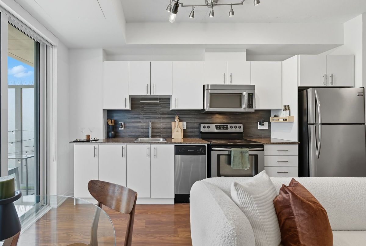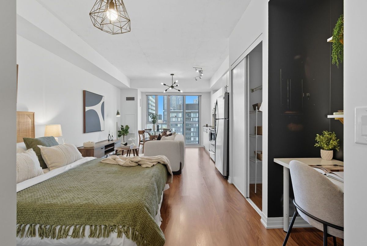 Bright, stylish, and smartly designed, this 442 sq. ft. studio offers modern living with no wasted space. Floor-to-ceiling windows showcase a sunny Eastview, while a 77 sq. ft. private balcony extends your living outdoors. Inside, enjoy a sleek 4-piece bathroom, two closets for ample ensuite storage, full-sized stainless-steel stove and fridge-freezer - rare in studio living - and ensuite laundry. One titled parking space and storage locker add everyday convenience. The building elevates your lifestyle with 24/7 security concierge, a gym, recreation & party rooms, plus a rooftop garden with BBQs. In Toronto's revitalized Regent Park, you're steps to the Pam McConnell Aquatic Centre, Regent Park Athletic Grounds & Community Centre, local cafés, and eateries. Located just 12 minutes by streetcar to Yonge-Dundas and 3 minutes to the DVP this home perfectly balances comfort, community, and connectivity. Building Amenities Include: Well equipped gym; guest suites; party and rec' rooms; rooftop garden patio w/BBQs; visitor parking and 24 hour security concierge.