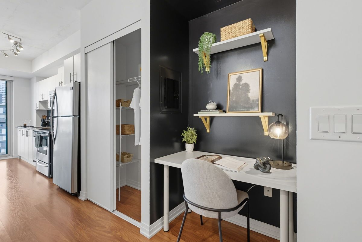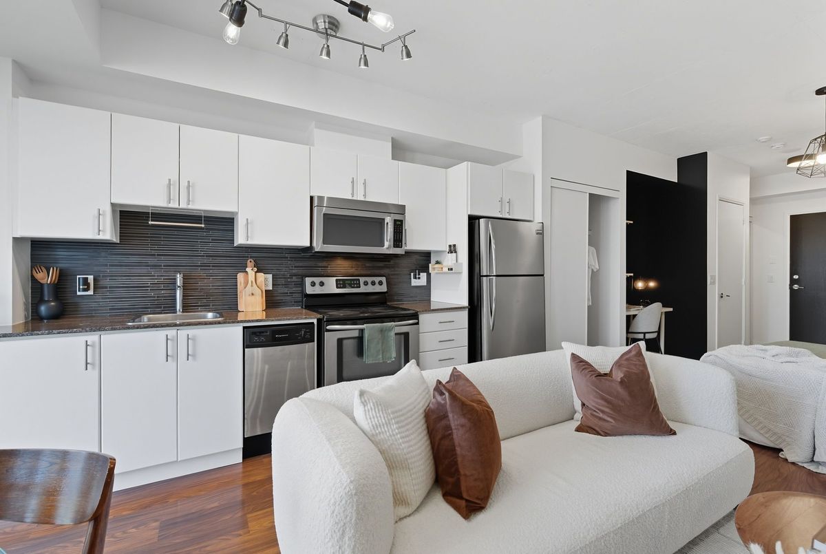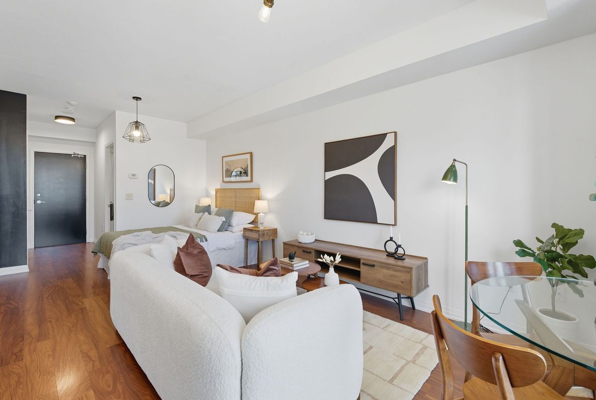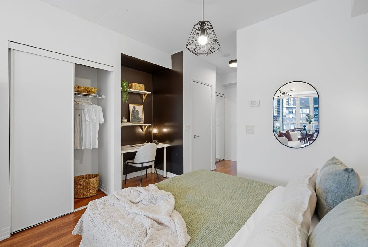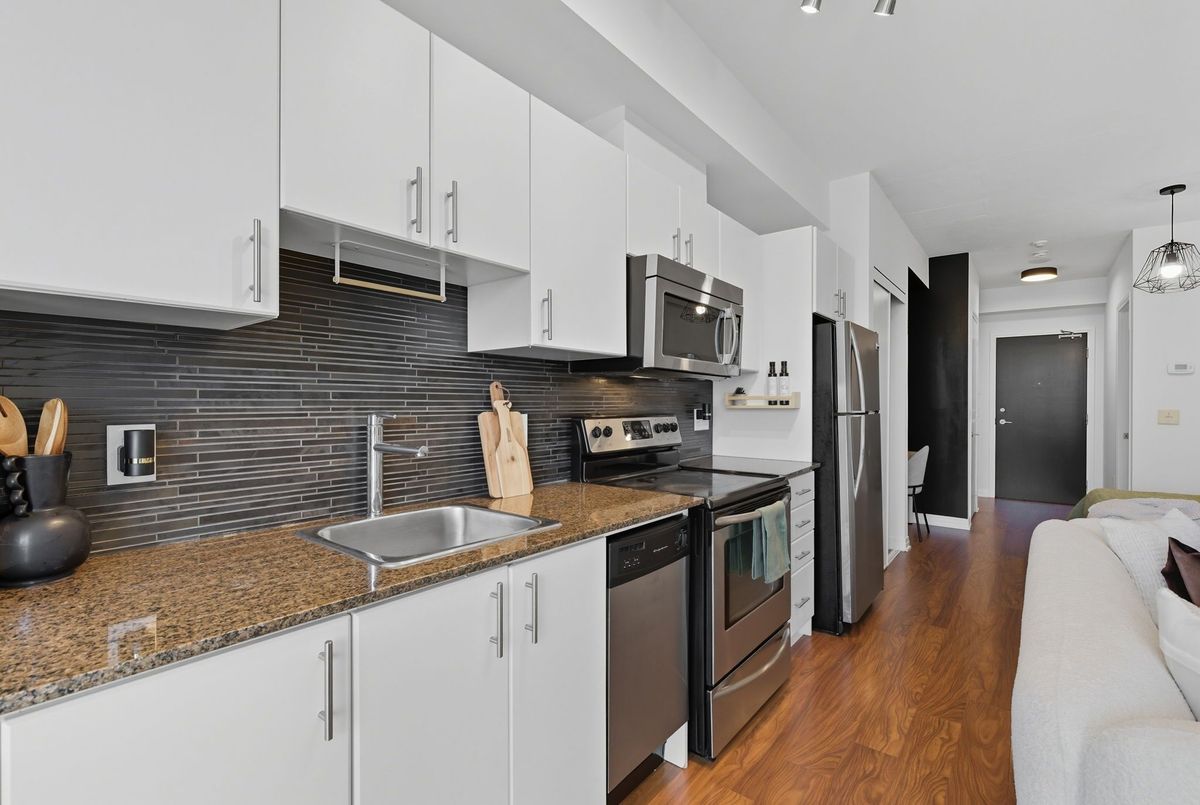 Bright, stylish, and smartly designed, this 442 sq. ft. studio offers modern living with no wasted space. Floor-to-ceiling windows showcase a sunny Eastview, while a 77 sq. ft. private balcony extends your living outdoors. Inside, enjoy a sleek 4-piece bathroom, two closets for ample ensuite storage, full-sized stainless-steel stove and fridge-freezer - rare in studio living - and ensuite laundry. One titled parking space and storage locker add everyday convenience. The building elevates your lifestyle with 24/7 security concierge, a gym, recreation & party rooms, plus a rooftop garden with BBQs. In Toronto's revitalized Regent Park, you're steps to the Pam McConnell Aquatic Centre, Regent Park Athletic Grounds & Community Centre, local cafés, and eateries. Located just 12 minutes by streetcar to Yonge-Dundas and 3 minutes to the DVP this home perfectly balances comfort, community, and connectivity. Building Amenities Include: Well equipped gym; guest suites; party and rec' rooms; rooftop garden patio w/BBQs; visitor parking and 24 hour security concierge.