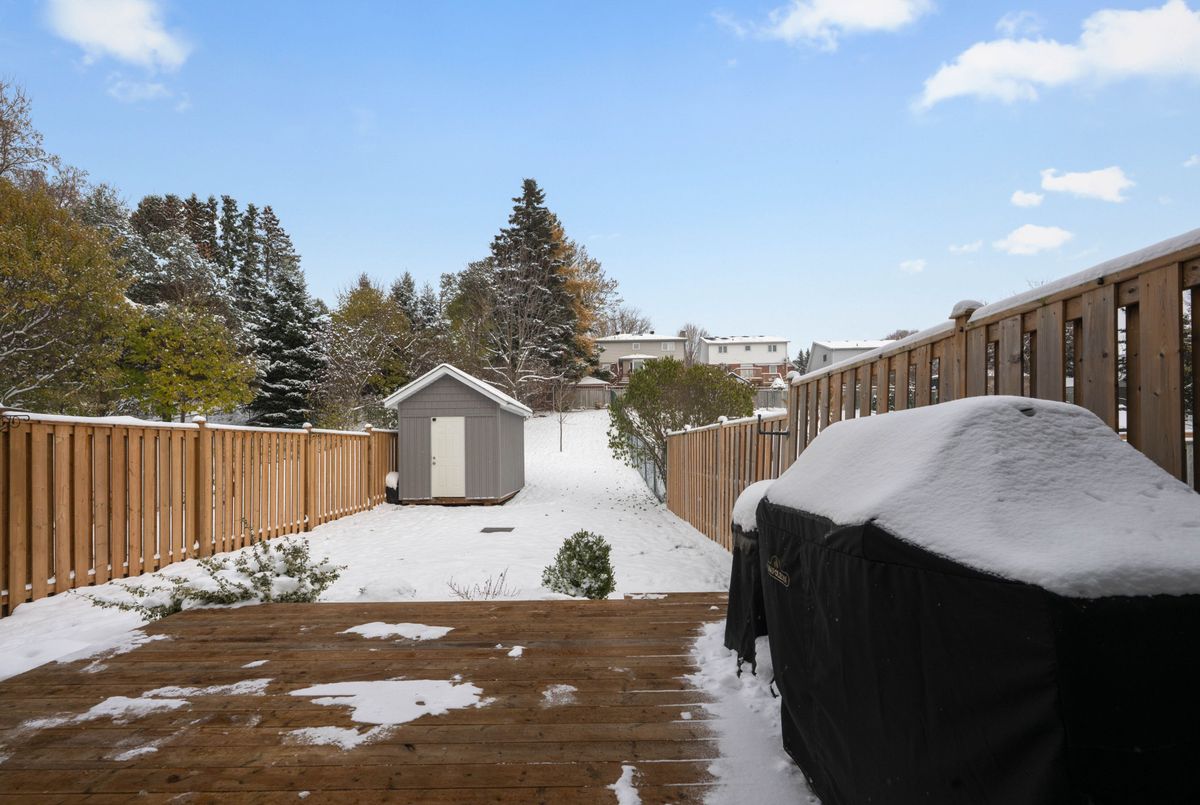 Welcome to your beautifully renovated boho-inspired semi in Orangeville! This stylish home offers a modern aesthetic with a custom feature wall, vibrant live plant accents, and a bright, open-concept main floor perfect for everyday living and entertaining. The kitchen is a chef's dream, featuring newer white cabinetry, stainless steel appliances, and a functional layout. Upstairs you'll find three generous bedrooms along with a tastefully updated bathroom (2023). Step outside to the fully fenced backyard and enjoy the new deck (2024), large 12'x8' storage shed, and gas BBQ line, ideal for relaxing or hosting friends and family.This home is loaded with updates for peace of mind including siding, soffit, fascia and eaves (2023), roof (2019), newer garage door and front entry door, furnace with humidifier (2014), and driveway (2020) that accommodates three vehicles. Basement offers a rough-in for a second bathroom, great future potential. Located close to local amenities, shopping, parks, and Island Lake Conservation Area (with beach area), plus school bus pick-up and public transit right at the end of the street. This location truly checks off all the boxes.Move-in ready, fully updated, thoughtfully designed! This is the one you've been waiting for.